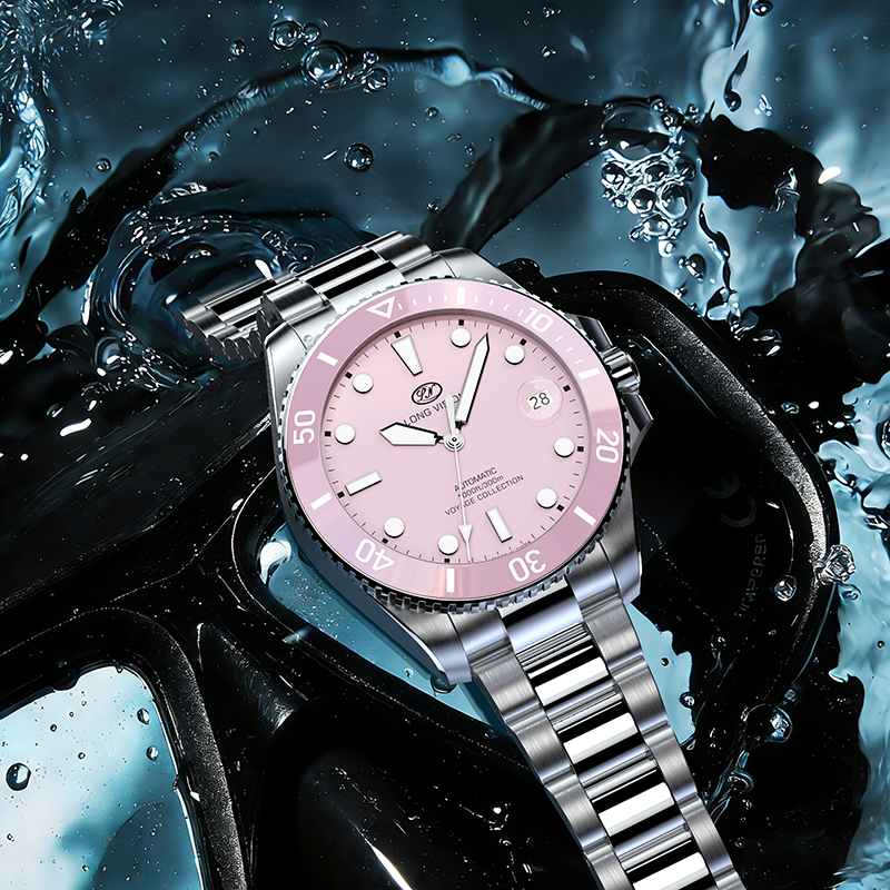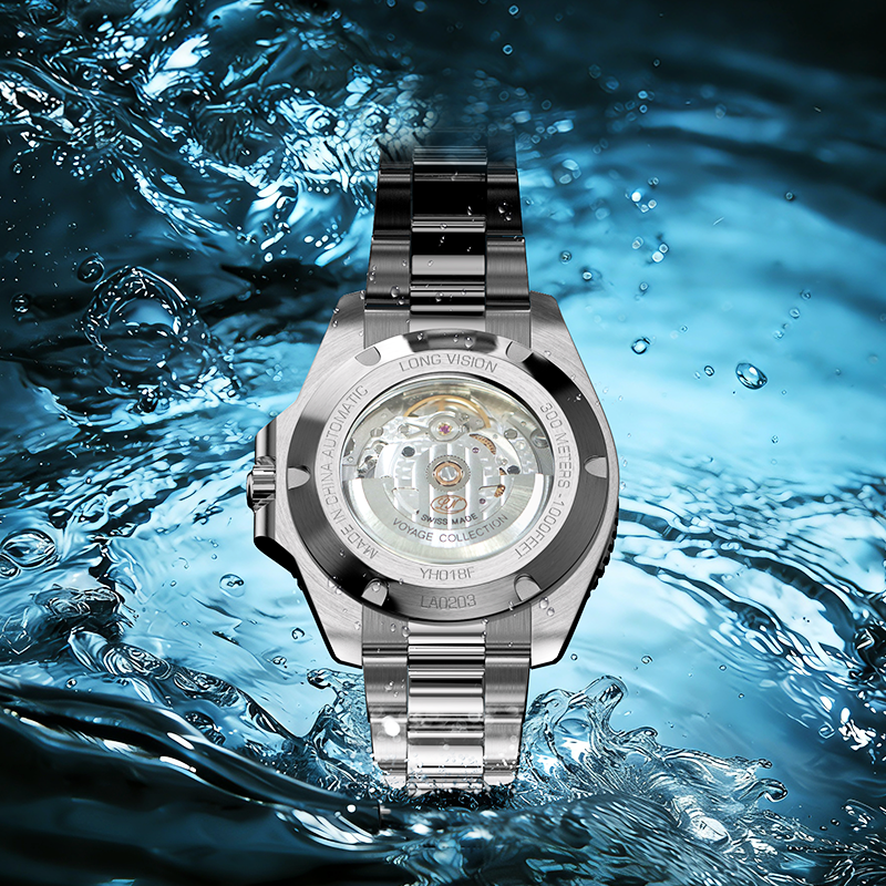 以深海探索与商务从容为灵感,专为多场景精英打造,集潜水、户外与高端商务属性于一身。300米防水无惧深海挑战,单向旋转计时表圈精准掌控时间;瑞士SW200-1自动上链机芯经30年制表大师6方位调教,精雕日内瓦纹透过透视底尽显机械美学。圆形时标搭配瑞士超级夜光,3点位隐形一体式放大镜清晰读时,每一处细节皆诠释高端机械表的匠心与实力。